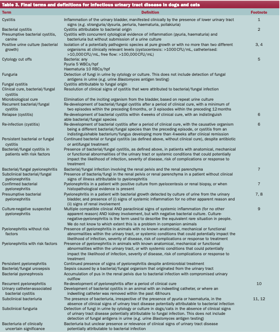 This has been quite evident with urinary tract disease in dogs and cats. For example “urinary tract infection” is a very commonly used but very generic term. It has been used for bacterial cystitis, subclinical bacteriuria, a positive urine culture, positive urine cytology, pyelonephritis or a few other conditions, or, often, indistinct combinations of those. This creates a lot of challenges since those are vastly different issues, and when we’re not speaking the same language or when we’re mixing completely different diseases into the same bundle, we create the potential for error, misdirection and misunderstanding.